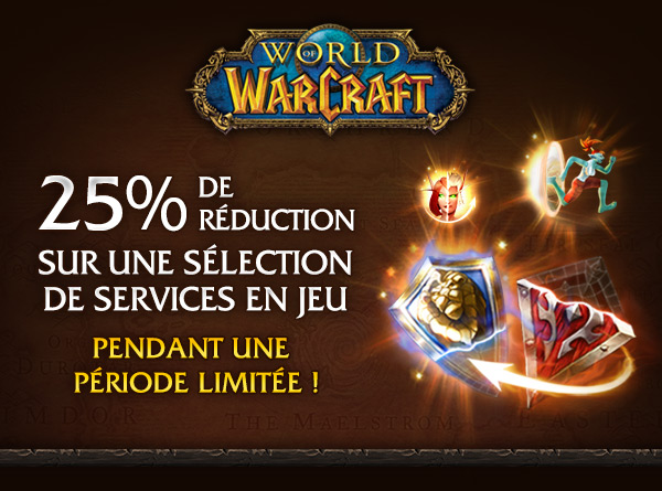 Il est grand temps de vous préparer à l’ouverture de la Tombe de Sargeras. Pour vous y aider, nous vous proposons 25 % de réduction sur une sélection de services en jeu World of Warcraft ! Ne tardez pas, car cette offre n’est valable que pour une durée limitée*.
